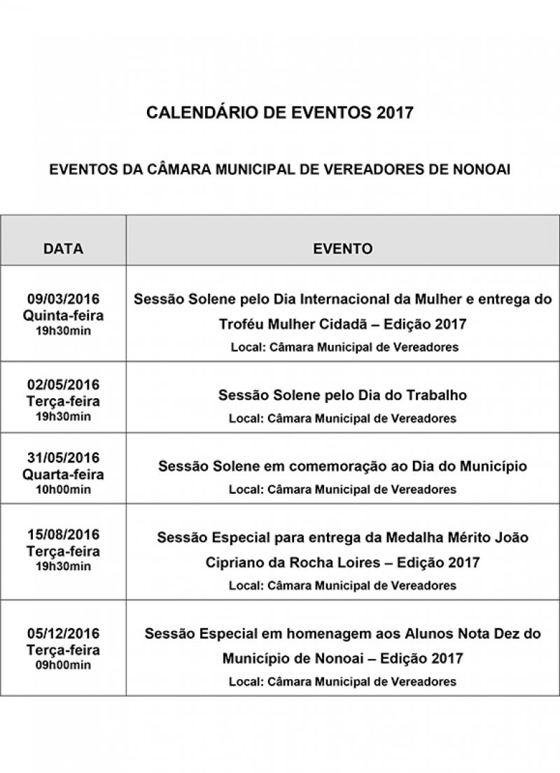 Publicado em 11/01/2017, Por Assessoria de ComunicaçãoA Presidente da Câmara de Vereadores, Vereadora Luciana Zanovello, participou nessa terça-feira (10), nas dependências do Plenário 31 de Maio, da Câmara Municipal de Vereadores de Nonoai, da reunião para tratar do Calendário de Eventos 2017. Na oportunidade as entidades do município apresentaram a Secretária de Educação e Cultura de Nonoai, Teresinha Salete Sperry, os eventos que irão desenvolver no decorrer do ano. Na oportunidade a Presidente do Legislativo apresentou aos presentes e a secretária os eventos que a Câmara de Vereadores estará desempenhando no decorrer do ano. CALENDÁRIO DE EVENTOS DA CÂMARA DE VEREADORES 2017