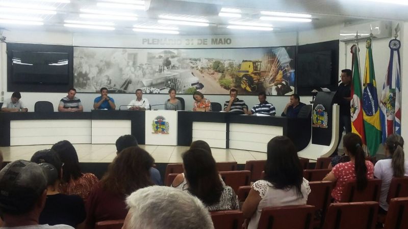 Publicado em 02/03/2017, Por Assessoria de ComunicaçãoA Câmara Municipal de Vereadores de Nonoai realizou no final da tarde desta quarta-feira (01), Audiência Pública com os servidores municipais para debater o Projeto de Lei do Poder Executivo Municipal que busca a alteração da data base da revisão geral das remunerações dos servidores ativos integrantes do quadro geral do Poder Executivo Municipal e magistério. Conforme o Projeto de Lei, a data da revisão que atualmente ocorre no mês de fevereiro, seria alterado, apenas neste ano, para o mês de julho. De acordo com o Prefeito Edilson Pompeu da Silva, a alteração se justifica neste ano em virtude da crise financeira que afeta o país. Com isso, se faz necessário um maior controle dos gastos do município, principalmente nas despesas com pessoal. Após mais de uma hora de debate entre vereadores, servidores municipais e o Executivo, o Presidente do Sindicato dos Servidores Públicos Municipais Mário Chaise, decidiu, juntamente com a diretoria da categoria, em convocar uma assembleia geral com todos os servidores para debater a alteração da data de revisão dos salários e o reajuste para o exercício 2017. A princípio a Assembleia ficou marcada para as 18 horas do dia 16 de março no plenário da Câmara de Vereadores. O projeto de Lei que tramita na Câmara de Vereadores será votado após a categoria discutir as propostas do executivo.