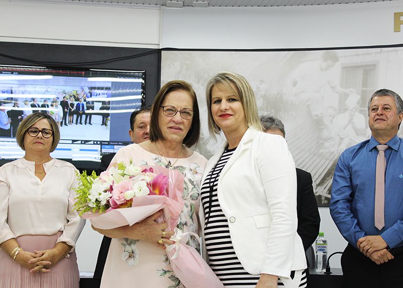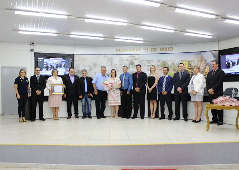 Publicado em 09/03/2018, Por ASSESSORIA DE COMUNICAÇÃOO Plenário da Câmara Municipal de Vereadores de Nonoai ficou lotado, na noite desta quinta-feira, Dia Internacional da Mulher (08) ,para mais uma Sessão Especial de entrega do Troféu Mulher Cidadã. A homenageada da noite foi Maria Aparecida Santos Machado – 72 anos de idade, indicada pelo Lions Clube em virtude de seu voluntariado na comunidade. Além da sociedade civil organizada, também prestigiaram o evento os familiares, amigos da homenageada, a Promotora de Justiça Dra. Michele Tais Kufner e a classe política. Os vereadores líderes de bancada, Dr. André Hypólito – PT, Décimo Mello – PSC, Zeca Vigne – PP, Zulmar De Bastiani - PDT, Rosa Barbiero – PMDB, o Presidente Paulo Paiakan – PP e o Prefeito Edilson Pompeu da Silva – PP dirigiram palavras parabenizando o trabalho voluntário realizado por Maria Aparecida na comunidade nonoaiense. Neste ano, o Presidente da Câmara, Paulo Paiakan, quebrou o protocolo e garantiu que as Servidoras da Câmara, as Vereadoras, a Promotora de Justiça Dra. Michele, as esposas dos Vereadores, a esposa do vice-prefeito e do Prefeito recebessem uma rosa em homenagem ao Dia Internacional da Mulher. Após a cerimônia foi servido um coquetel.