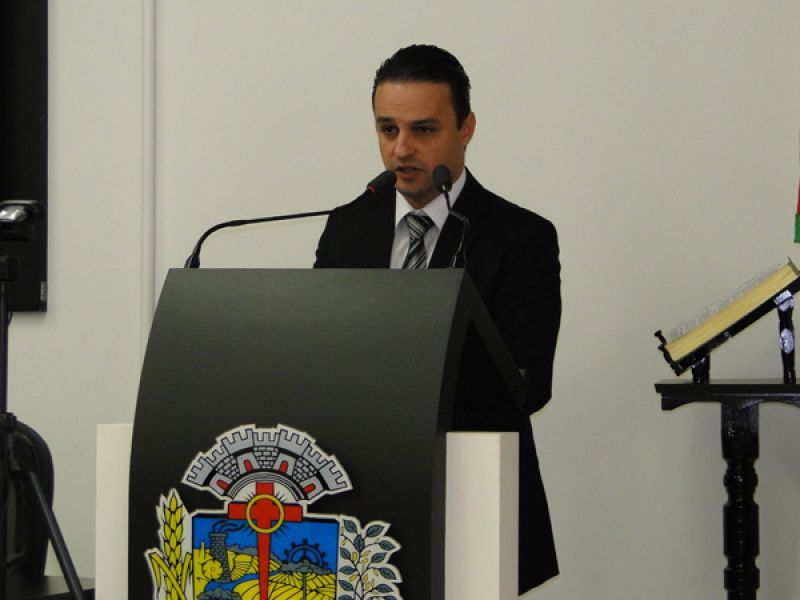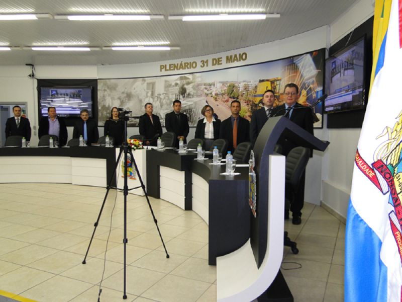 Vereador Fabrício de Moura - Líder da Bancada do PP, Vereadora Rosa Barbiero - Líder da Bancada do PMDB e Vereador Zulmar Debastiani - Líder da Bancada do PDT. Também fez seu pronunciamento o Prefeito Edilson Pompeu da Silva - PP e o Presidente da Câmara Municipal de Vereadores Paulo Paiakan - PP.