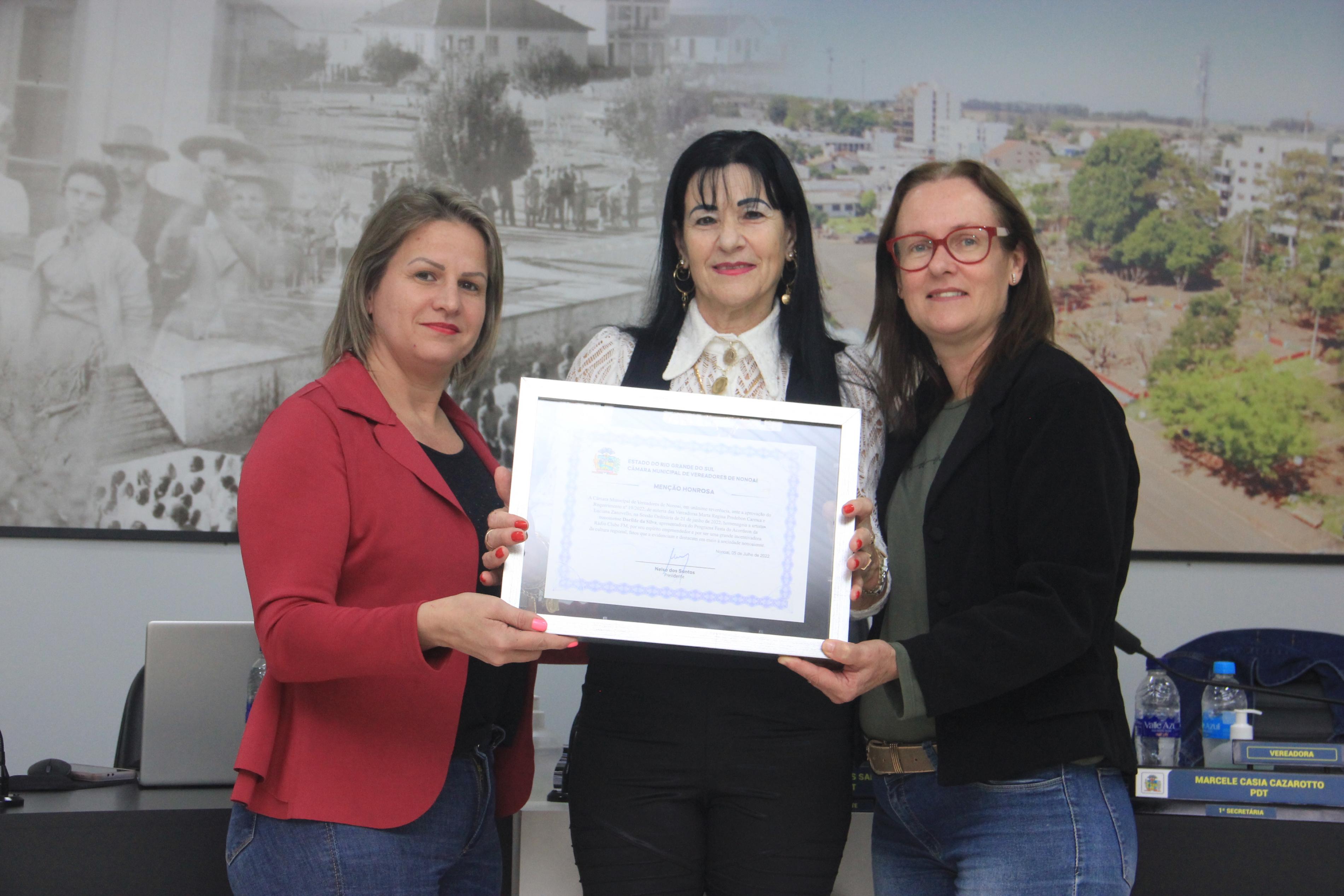 Publicado em 07/07/2022, Por Câmara Municipal de Vereadores de Nonoai - RSAconteceu na data de 05 de julho do corrente ano, mais uma Sessão Ordinária da Câmara de Vereadores. Tomou posse nesta Sessão, o Suplente de Vereador, Adriano de Abreu, do Partido Democrático Trabalhista, que assumiu a vaga deixada pela Vereadora Benildes Casarin Zanatta (PDT), que está licenciada até a data de 31/07/2022. Após a Sessão, ante a aprovação do Requerimento nº 19/2022, de autoria das Vereadoras Marta Regina Predebon Caresia e Luciana Zanovello, foi realizada a entrega de Menção Honrosa à Dorilde da Silva, apresentadora do Programa Festa do Acordeon da Rádio Clube FM, por seu espírito empreendedor e por ser uma grande incentivadora da cultura regional, fatos que a evidenciam e destacam em meio à sociedade nonoaiense. Confira as matérias que estiveram em pauta e o resultado da votação: