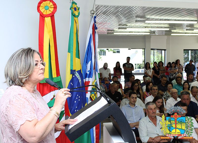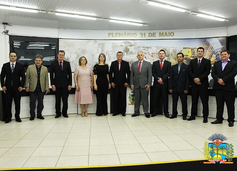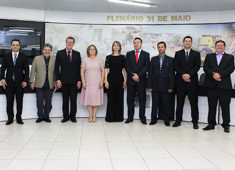 Publicado em 02/01/2017, Por Assessoria de ComunicaçãoNeste sábado (31), os vereadores eleitos no pleito municipal de outubro de 2016, foram empossados aos cargos eletivos. O ato oficial foi realizado no Plenário 31 de Maio da Câmara Municipal de Vereadores onde ocorreu a escolha da Mesa Diretora da Câmara para o ano de 2017. A Mesa Diretora ficou assim constituída: Luciana Zanovello - PP presidente, José Antônio D´Agostini Vigne - PP vice-presidente; Rosa Maria Nunes Faria Barbiero - PMDB primeira secretária; Idelar Caresia - PDT - segundo secretário. Para a Comissão de Constituição e Justiça (CCJ), ficaram os vereadores: Fabrício Trentin de Moura - PP; José Antônio D´Agostini Vigne - PP e Rosa Maria Nunes Faria Barbiero - PMDB e na Comissão de Finanças, Orçamento e Obras Públicas (CFOOP), vereadores André Luiz Moreira Hypólito - PT; Paulo Roberto da Rosa - PP e Zulmar De Bastiani - PDT. Os líderes de bancadas para o ano 2017 são os Vereadores Zulmar De Bastiani - PDT; Rosa Maria Nunes Faria Barbiero - PMDB; Fabricio Trentin de Moura - PP; Décimo Pedro Vassoler de Mello - PSC e André Luiz Moreira Hypólito - PT.