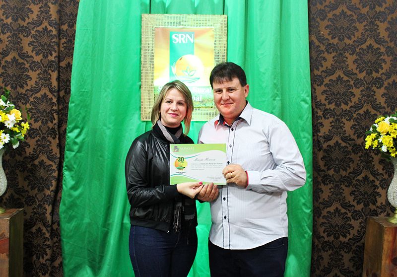 Publicado em 21/08/2017, Por ASSESSORIA DE COMUNICAÇÃOUm jantar de confraternização realizado na noite dessa sexta-feira (18), reunindo produtores rurais, representantes de entidades de classe e autoridades da microrregião, marcou os 30 anos do Sindicato Rural de Nonoai, fundado em Nonoai no ano de 1987. Na ocasião a Presidente da Câmara de Vereadores de Nonoai, Vereadora Luciana Zanovello, fez a entrega de uma placa de Menção Honrosa ao Presidente do Sindicato Rural de Nonoai, Alécio Bringhentti, pelos relevantes serviços prestados pelo Sindicato em pról do setor agricola. Segundo a Presidente Luciana Zanovello, "o Sindicato Rural de Nonoai é uma importantissima ferramenta que defende o setor primário do agronegócio, bem como o trabalho social de capacitação de centenas de pessoas através de cursos oferecidos pelo SENAR". O evento foi realizado na sede da Melhor Idade Alegria Nonoaiense.