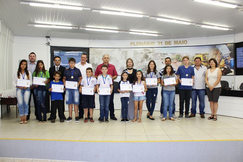 Publicado em 12/12/2017, Por Assessoria de ComunicaçãoA Câmara Municipal de Vereadores de Nonoai se transformou mais uma vez em um palco de homenagens. Na manhã desta segunda-feira, (dia 11/12) foi à vez dos estudantes receberem uma Menção Honrosa em cumprimento a Lei Municipal nº 2.703, de 24 de novembro de 2010, que propõe a realização de homenagens aos alunos do município. Segundo a Lei, anualmente, são selecionados 2 alunos de cada escola. A escolha é feita pela direção e corpo docente, levando em consideração, além do rendimento escolar, critérios de seleção como pontualidade, comportamento e comprometimento com os estudos, além da participação ativa nas atividades desenvolvidas pela escola. O objetivo da premiação é reconhecer e incentivar o estudo e o bom desempenho escolar por parte dos estudantes. Todas as escolas do município, sejam elas privadas ou públicas, podem participar, desde o ensino fundamental até o ensino médio. Neste ano, quando se chega à sétima edição do Prêmio, foram homenageados os seguintes alunos: Colégio Cenecista Padre Manoel Gomez Gonzales Isadora Capelari Mânica Laura de Moura Escola Municipal de Ensino Fundamental Jair de Moura Calixto Giovana Milani de Lima Juliana de Fátima Vieira Inhaia Escola Municipal de Ensino Fundamental 22 de Junho de Tope da Chalana Robson de Oliveira Luiz Felipe Zanatta Fiorentin Escola Municipal de Ensino Fundamental Ofrásio Ribeiro de Mello do Tope da Serra Ana Júlia de Melo Vieira Ana Paula Marcon Pereira Escola Estadual Indígena de Ensino Fundamental Joaquim Gaten Cassemiro Ariane Fonseca Trindade Suelen Venh Féj Loureiro Escola Estadual de Ensino Fundamental Adílio Daronchi Mathias Aimi da Silva Enzo Pizzi Cazarotto Escola Estadual de Ensino Médio Maria Dulcina Victor Dalbosco Guarezi João Pedro Roso dos Santos