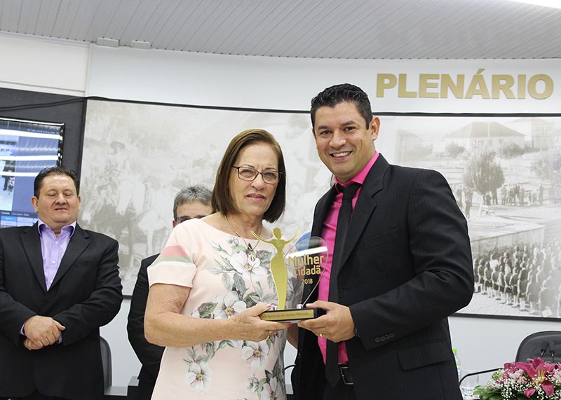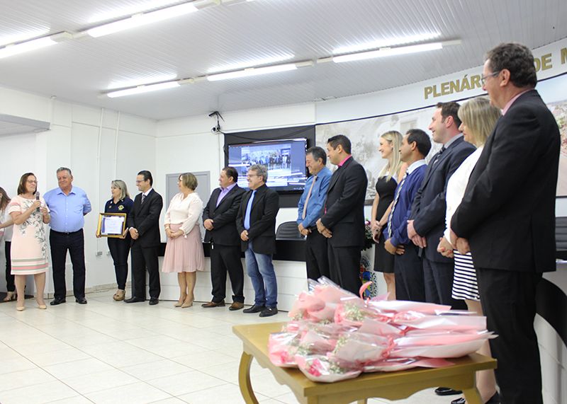 Publicado em 09/03/2018, Por ASSESSORIA DE COMUNICAÇÃOO Plenário da Câmara Municipal de Vereadores de Nonoai ficou lotado, na noite desta quinta-feira, Dia Internacional da Mulher (08) ,para mais uma Sessão Especial de entrega do Troféu Mulher Cidadã. A homenageada da noite foi Maria Aparecida Santos Machado – 72 anos de idade, indicada pelo Lions Clube em virtude de seu voluntariado na comunidade. Além da sociedade civil organizada, também prestigiaram o evento os familiares, amigos da homenageada, a Promotora de Justiça Dra. Michele Tais Kufner e a classe política. Os vereadores líderes de bancada, Dr. André Hypólito – PT, Décimo Mello – PSC, Zeca Vigne – PP, Zulmar De Bastiani - PDT, Rosa Barbiero – PMDB, o Presidente Paulo Paiakan – PP e o Prefeito Edilson Pompeu da Silva – PP dirigiram palavras parabenizando o trabalho voluntário realizado por Maria Aparecida na comunidade nonoaiense. Neste ano, o Presidente da Câmara, Paulo Paiakan, quebrou o protocolo e garantiu que as Servidoras da Câmara, as Vereadoras, a Promotora de Justiça Dra. Michele, as esposas dos Vereadores, a esposa do vice-prefeito e do Prefeito recebessem uma rosa em homenagem ao Dia Internacional da Mulher. Após a cerimônia foi servido um coquetel.