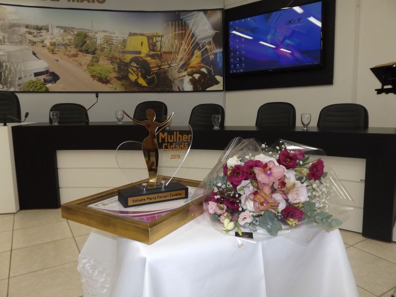 Câmara Municipal de Vereadores realiza Sessão Solene em homenagem ao Dia Internacional da Mulher e entrega do Troféu Mulher Cidadã 2019 para Volnete Maria Fornari Zanette.