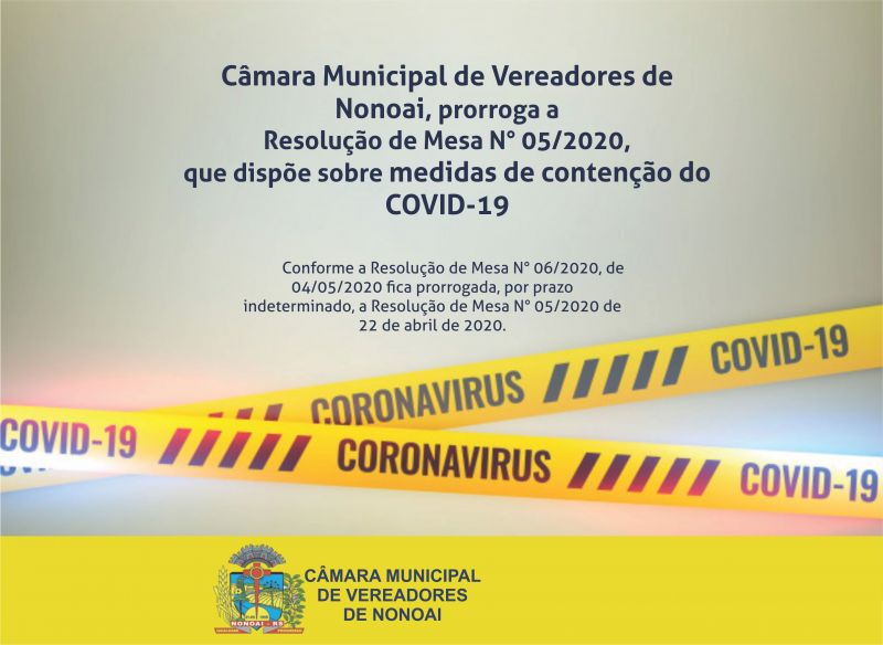 Câmara Municipal de Vereadores de Nonoai prorroga a resolução de mesa N° 05/2020, a qual dispõe sobre medidas de contenção do COVID-19.
